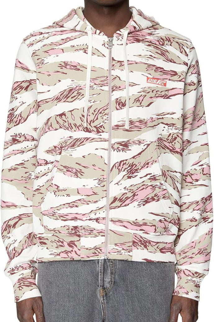 ارتقِ بخزانة ملابسك الكاجوال مع هودي ديزل بسحاب أمامي مموه. مصنوع من مزيج ناعم من القطن والبوليستر، يتميز هذا الهودي بطبعة مموهة جريئة، وسحاب أمامي كامل، وغطاء رأس برباط قابل للتعديل، وأساور وحاشية مضلعة. مثالي للارتداء فوق الملابس أو إطلالات الشارع. مصنوع من خامات قطنية وبوليسترية ناعمة تسمح بمرور الهواء، وراحة تدوم طويلًا، وأسلوب عصري.