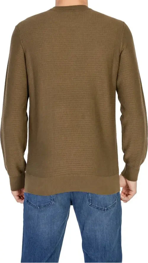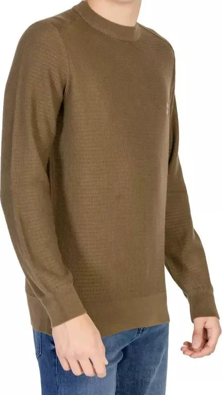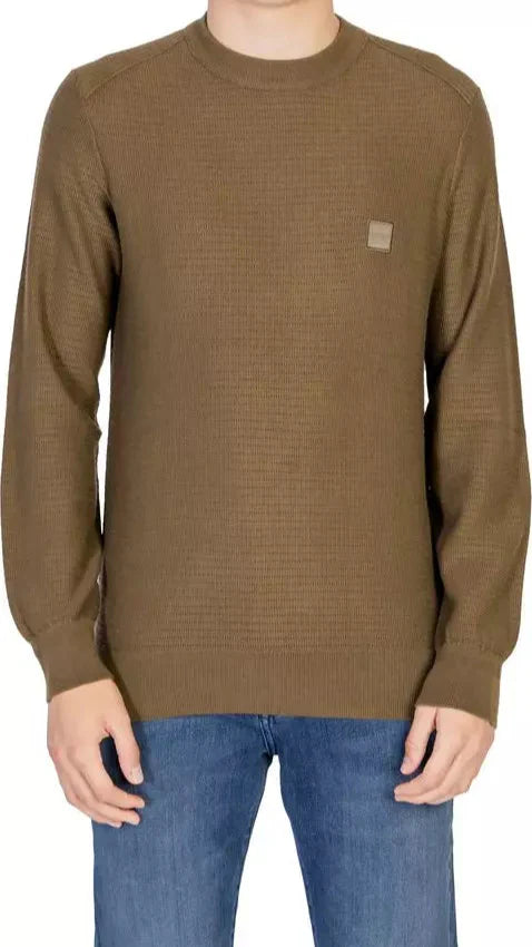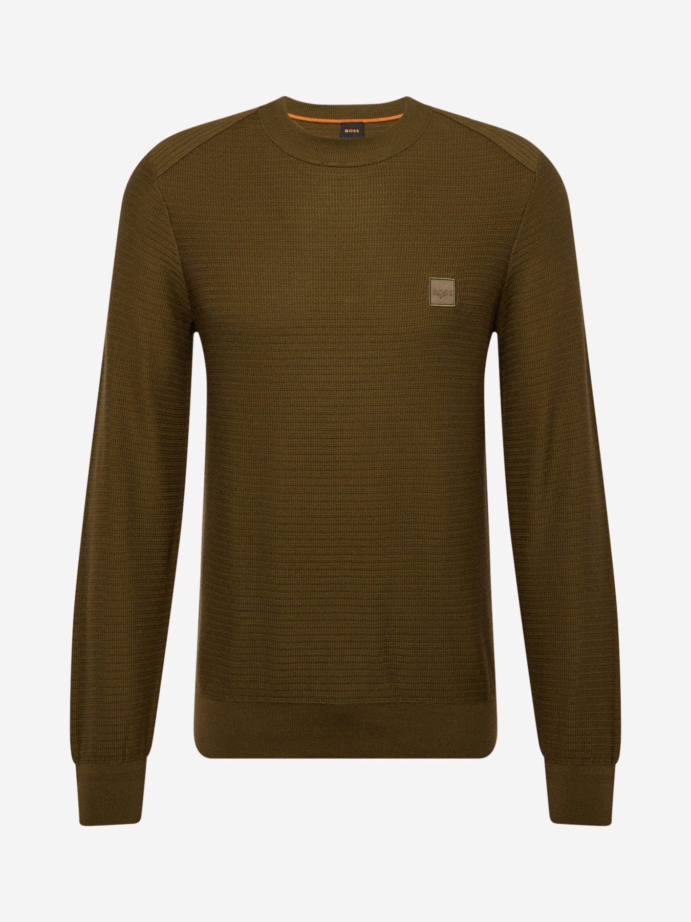 هوغو بوس سترة محبوكة من الكشمير والقطن بياقة دائرية باللون الأخضر