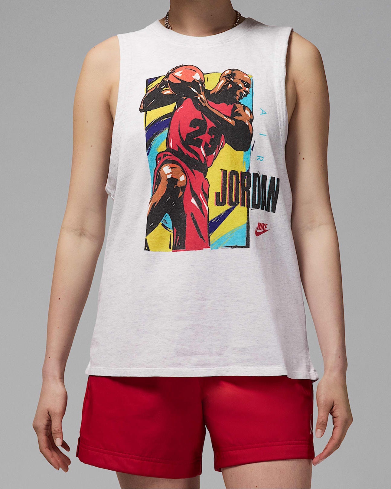 تيشيرت جوردان النسائي بدون أكمام برسومات جرافيكية يجمع بين الراحة الرياضية والأناقة العصرية. مصنوع من قماش ناعم يسمح بمرور الهواء، يتميز هذا التيشيرت بطبعة جرافيكية جريئة لجوردان على الجهة الأمامية، وقصة مريحة تُبقيكِ منتعشة خلال النزهات أو جلسات التدريب في الطقس الدافئ. مثالي للارتداء فوق طبقات أو منفردًا.
