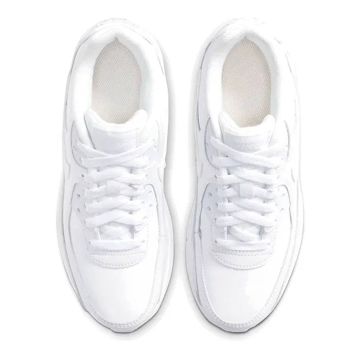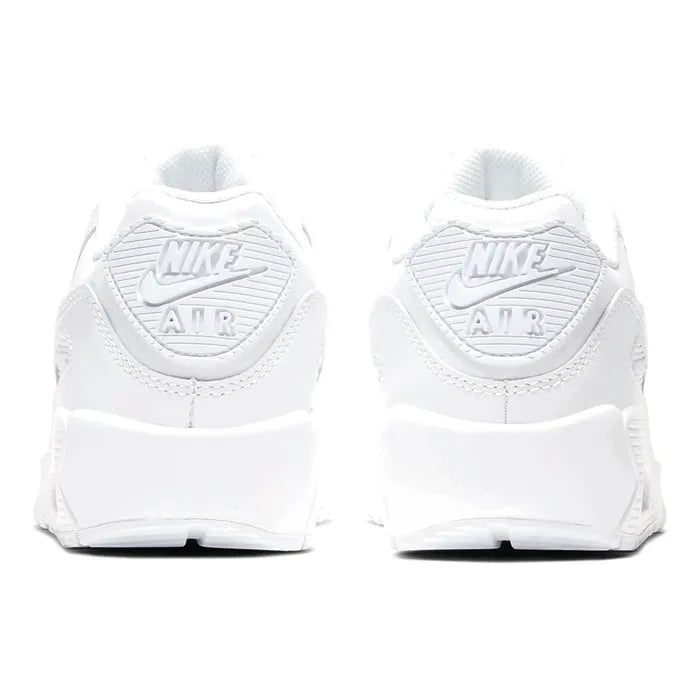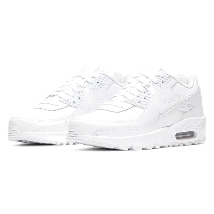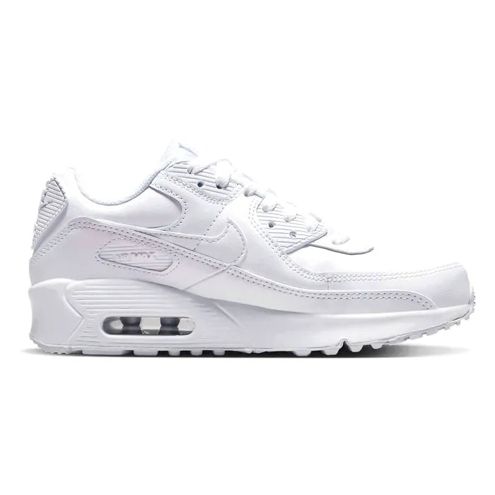 حذاء الجري Nike Air Max 90 Leather (GS) للأطفال الكبار يتميز بجزء علوي من الجلد المتين لمظهر كلاسيكي. مزود بتوسيد Max Air في الكعب، يوفر هذا الحذاء الرياضي الراحة والدعم للارتداء اليومي. يضمن النعل الخارجي المطاطي المزخرف الثبات والمتانة، بينما يوفر الياقة واللسان المبطنان راحة إضافية. يتميز هذا الحذاء بلون أبيض أنيق مع لمسات فضية معدنية، ليمنحك مظهرًا كلاسيكيًا للرياضيين الصغار.