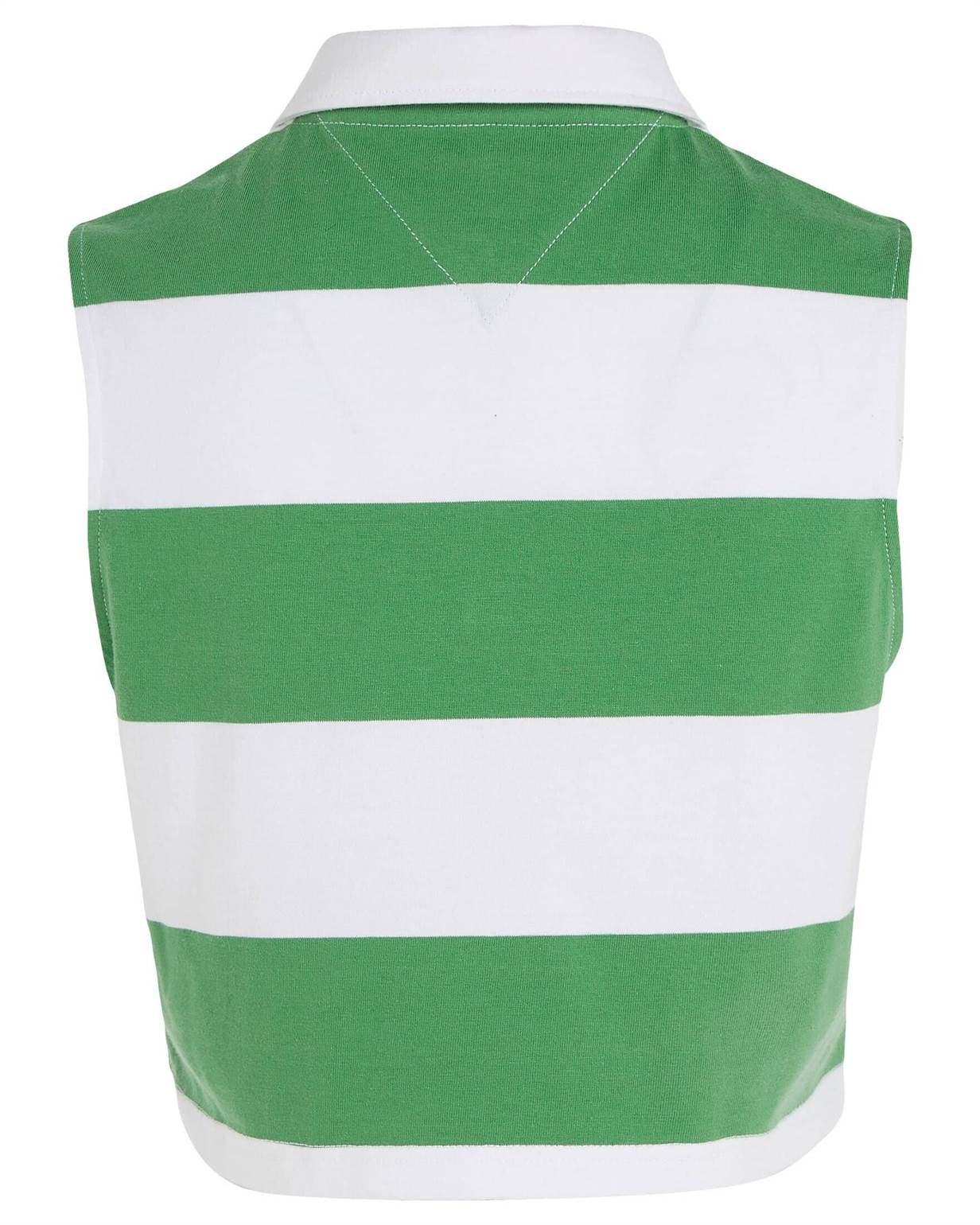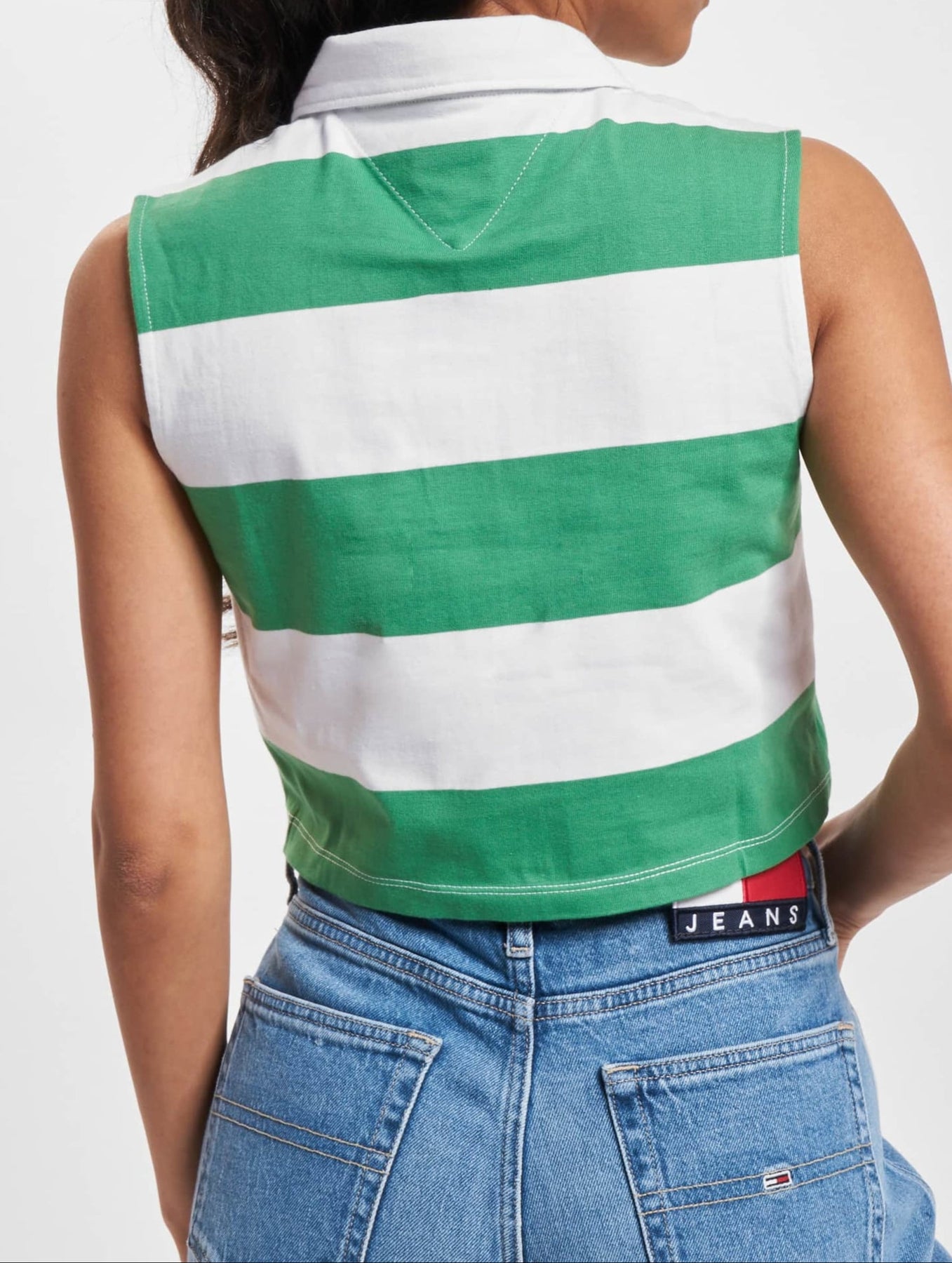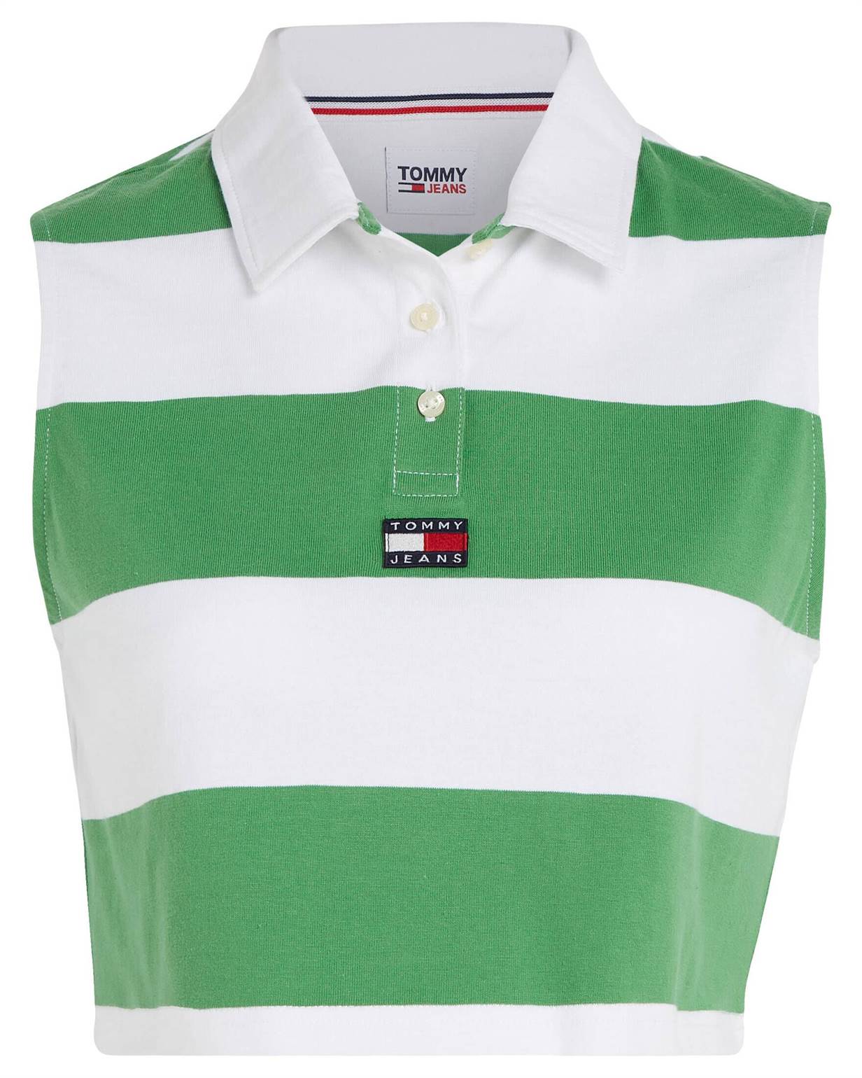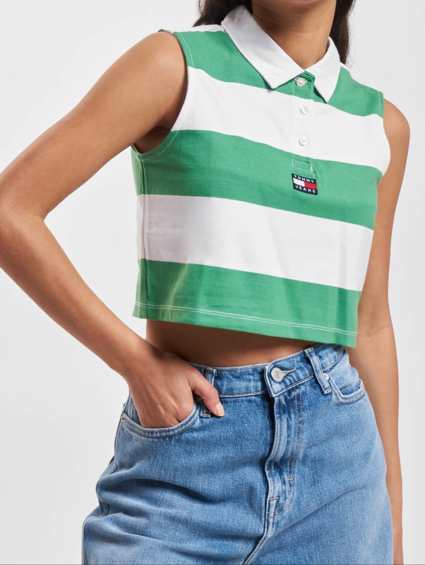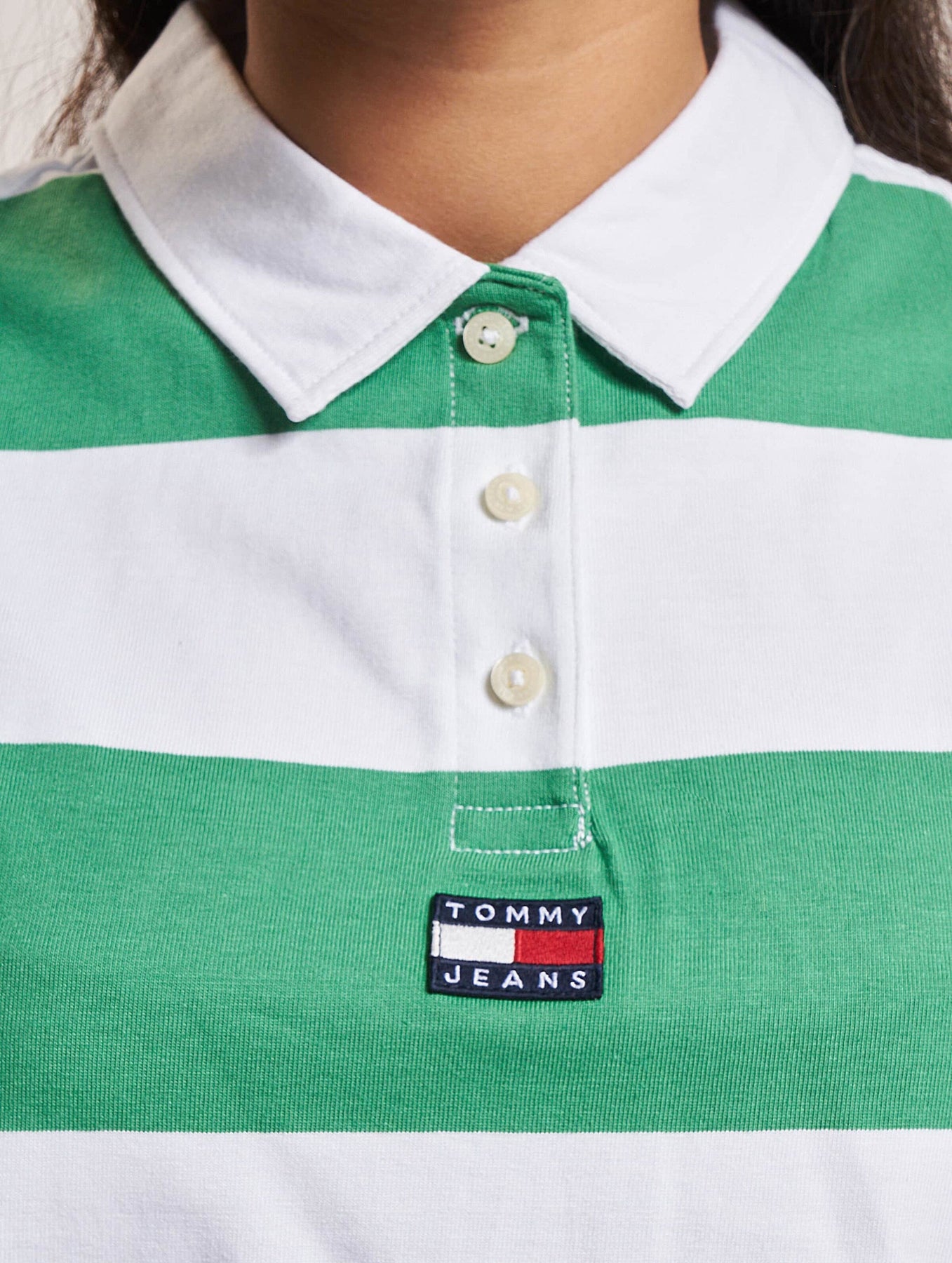 يتميز قميص بولو تومي جينز TJW Crop Badge Stripe SL باللون الأخضر بتصميم عصري قصير مع خطوط جريئة وشعار الرجبي المميز على الصدر. مصنوع من مزيج ناعم من القطن والإيلاستين، ويوفر قصة مريحة وراحة فائقة. مثالي للارتداء مع بنطال جينز أو شورت عالي الخصر لإطلالة أنيقة وعصرية.