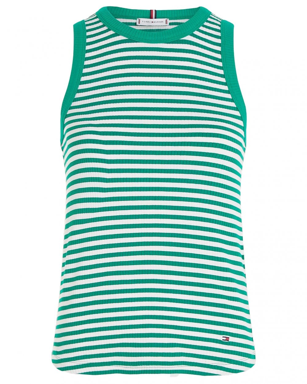 توب تومي هيلفيغر المخطط النسائي النحيف، باللونين الأبيض والأخضر، يتميز بقصّة ضيقة أنيقة بنقشة خطوط أفقية خالدة. مصنوع من مزيج مستدام من 95% فيسكوز معتمد من مجلس الإشراف على الغابات (FSC) و5% إيلاستين، ليمنحكِ ملمسًا ناعمًا ومرنًا لراحة تدوم طوال اليوم. يتميز بياقة دائرية وشعار تومي هيلفيغر المميز، وهو مثالي للارتداء مع طبقات أخرى أو بمفرده في الأيام الدافئة.