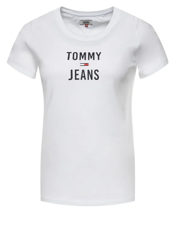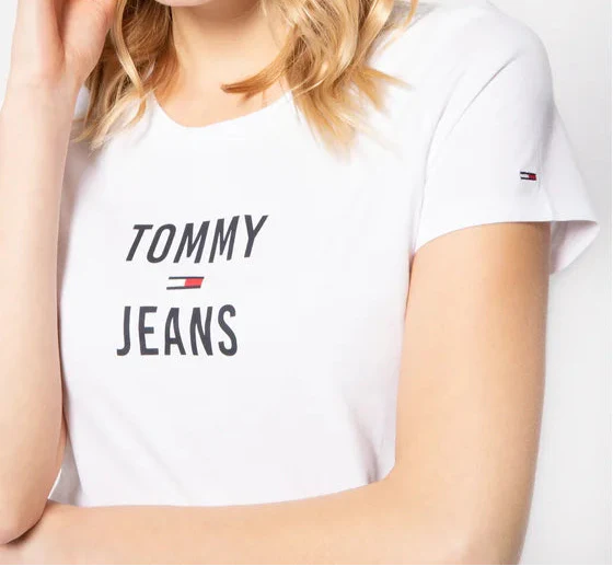 أضفِ لمسةً عصريةً لا تُضاهى إلى خزانة ملابسك مع تيشيرت تومي جينز النسائي بشعاره المربع باللون الأبيض الناصع. مصنوع من قطن ناعم يسمح بمرور الهواء، يتميز هذا التيشيرت بقصّة عادية وأكمام قصيرة وياقة دائرية كلاسيكية لراحة يومية. شعار تومي جينز المربع المميز المطبوع على الصدر يمنحه إطلالةً جريئةً يسهل تمييزها. مثالي للارتداء مع الجينز أو الشورت أو تحت جاكيت جينز، فهو قطعة مثالية لإطلالة كاجوال أنيقة وبسيطة.