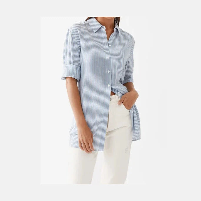 يتميز قميص Guess Back Graffiti Print بياقة كلاسيكية وأكمام طويلة وقصة عادية. مصنوع من مزيج من 50% قطن و50% فيسكوز، ليمنحك شعورًا بالراحة والتهوية. مزين بنقشة مخططة وطبعة جرافيتي مميزة على الظهر، مما يضفي لمسة عصرية على خزانة ملابسك.